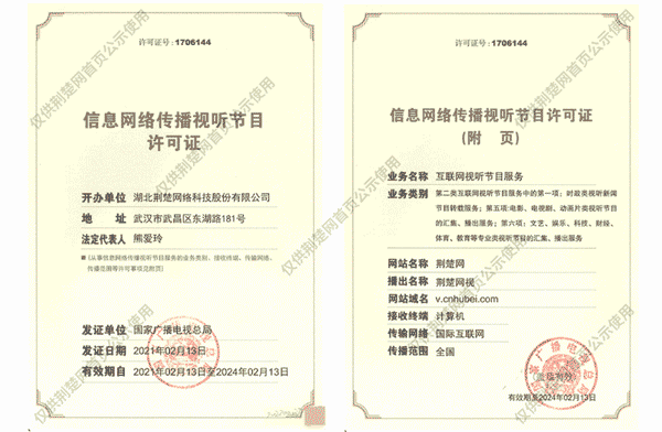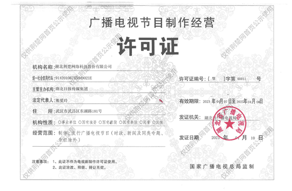廣播電視節(jié)目制作經(jīng)營(yíng)許可證(鄂)字第000號(hào)
