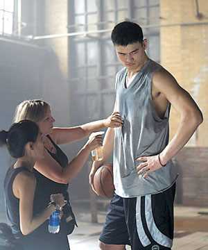 想知道姚明是如何拍廣告的嗎?“佳得樂(lè)”給你答案。此廣告中最需要的,便是姚明在球場(chǎng)上汗流浹背的效果。于是,現(xiàn)場(chǎng)一位“造汗”化妝師便對(duì)“小巨人”進(jìn)行了特殊處理:用大管?chē)姙ⅲ谝γ鞯哪樅颓蛞律贤瓿闪撕沟蔚拇笾螺喞。一瞬間,眼前的姚明,就搖身一變儼然剛剛打完一場(chǎng)比賽,全身都被汗水濕透。