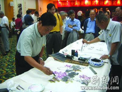 昨日,來自中、日、新、韓四國共26名書畫大家在游覽三峽后,紛紛揮毫潑墨,并與宜昌本土?xí)嫾疫M(jìn)行了交流。據(jù)了解,此次四國書畫家友好聯(lián)盟大型筆會活動,是由宜昌市政協(xié)、宜昌點軍區(qū)政府和宜昌環(huán)中房地產(chǎn)開發(fā)有限公司、宜昌環(huán)中旅游開發(fā)有限公司共同舉辦的。荊楚網(wǎng)楚天都市報記者梅曉蕓攝