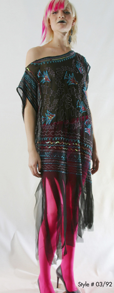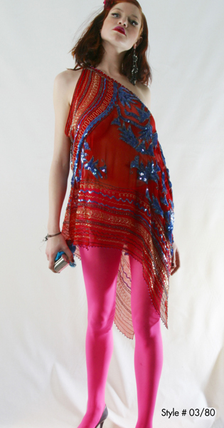 現(xiàn)年63歲的Zandra Rhodes,是英國乃至世界時(shí)裝界舉足輕重的人物,她所設(shè)計(jì)的朋克時(shí)裝在上個(gè)世紀(jì)70年代曾經(jīng)風(fēng)靡一時(shí),并曾為Jackie Onassis, Diana Ross, Diana王妃設(shè)計(jì)造型。后來,隨著中性色調(diào)的流行,她用色鮮明、圖案大膽的設(shè)計(jì)風(fēng)格逐漸淡出時(shí)裝舞臺(tái);但是,在進(jìn)入本世紀(jì)之后,新一代的年輕人又開始欣賞起她獨(dú)特的品位。