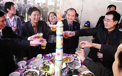襄樊市委領(lǐng)導(dǎo)靳永龍、馬黎,棗陽市委書記常全華和聶新勝等人,來到精心制作的生日蛋糕前,切生日蛋糕。頓時,歡樂的禮花四處綻放,鞭炮齊鳴。來自全國各地的百余名記者紛紛舉起手中的相機(jī),閃光燈閃個不停,爭相記錄下這難忘的一刻。