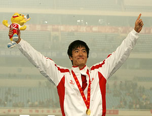 十運會田徑比賽最精彩的大戲10月20日在奧體中心田徑場進行,奧運冠軍劉翔在萬眾矚目之中,以13秒10的好成績毫無懸念地奪得冠軍,這是他在全運會中的第二次奪冠,也是他今年在國內(nèi)比賽中的第二好成績。(圖片來自新浪體育)