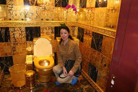 在2002年版的《吉尼斯世界紀(jì)錄》上有著這樣一條記錄:“用錢沖洗――世界上最昂貴的衛(wèi)生間由珠寶商林世榮制造,在他的中國香港商店售價(jià)240萬英鎊。它完全由金子和昂貴的珠寶制成。抽水馬桶、洗臉臺(tái)、刷子、衛(wèi)生紙盒、鏡框、墻上架設(shè)的吊燈、墻上的瓷磚和門全部都由24K黃金構(gòu)成。” “這里有一點(diǎn)寫得不對(duì),我的金廁所決不出售,我還要用它來專門注冊一個(gè)品牌,成為我們企業(yè)的象征!绷质罉s在接受記者采訪時(shí),詳細(xì)地解釋了自己對(duì)“金廁所”的感情。 現(xiàn)任香港恒豐金業(yè)科技集團(tuán)主席的林世榮說:“整個(gè)金廁所都是由我親自設(shè)計(jì)、監(jiān)督制造的,我甚至在工地呆過整整三天三夜沒有出來,可以說是傾注了極大的心血。很多人可能不了解我為什么會(huì)用這么多黃金來建造一個(gè)廁所,其實(shí)我不是為了炫耀,也不是喜歡奢侈浪費(fèi),我是在完成一個(gè)心愿。把土變成金了不起,把金變成土同樣了不起。”
