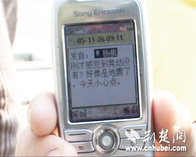用戶:ymcbz 今天上午8時(shí)45分左右,我們還以為起了大風(fēng)……有的人已經(jīng)跑到樓下:是不是有地震? 五樓的小涂說:太陽(yáng)能水管在擺動(dòng)……前樓的小王說:窗簾斜擺,風(fēng)鈴發(fā)聲! 家里魚缸的水晃出來了! 縣檢察院正在開會(huì),桌上的茶杯晃動(dòng),大家都往樓下跑。 感謝荊楚網(wǎng),快速告訴了我們事實(shí)的真相!