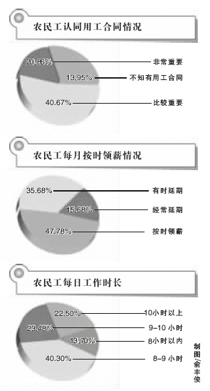 農(nóng)民工按時領(lǐng)薪者不到半數(shù)。