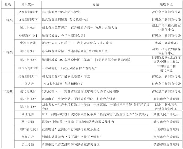 2020年,湖北應急人牢記初心使命、踐行訓詞精神,圍繞安全生產、防災減災救災、應急救援三大主責主業(yè),經歷戰(zhàn)疫、戰(zhàn)洪、戰(zhàn)貧三場大考,打贏防范化解重大安全風險攻堅戰(zhàn),向全國、全省人民展現了不懼艱險、逆向而行的應急鐵軍風采,諸多工作成果受到媒體廣泛關注。來自各級各媒體記者、應急管理戰(zhàn)線的通訊員,精心撰寫、拍攝、制作了一大批形式豐富、內容精彩精品力作,深入宣傳我省應急管理改革發(fā)展成效。經評審委員會評審,69部(篇)“好新聞作品”從報送的上千條作品中脫穎而出,分獲文字、廣播電視、攝影、新媒體四大類一、二、三等獎,現將獲獎作品予以發(fā)布。