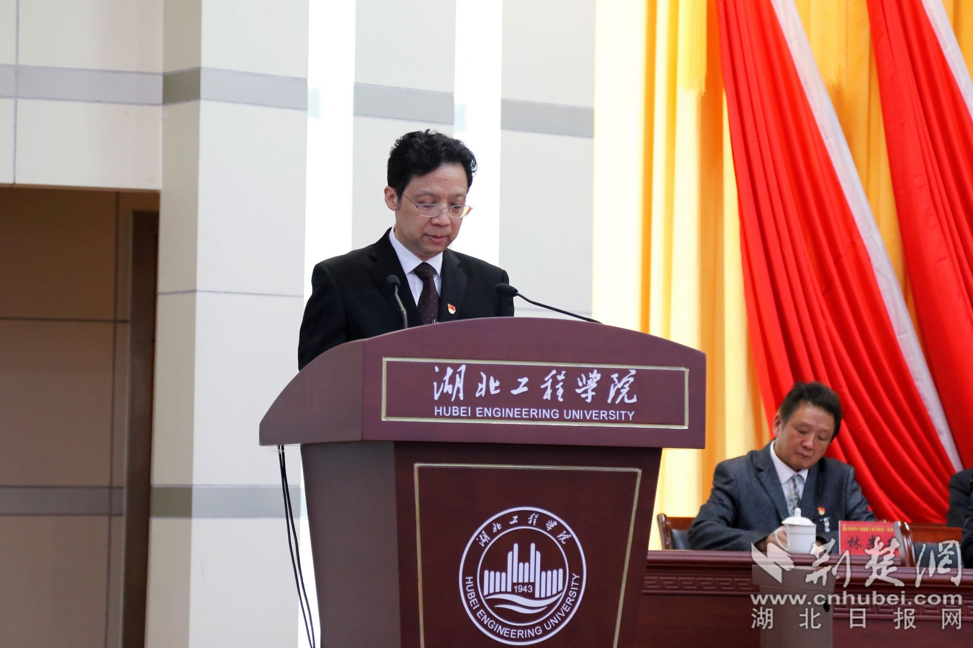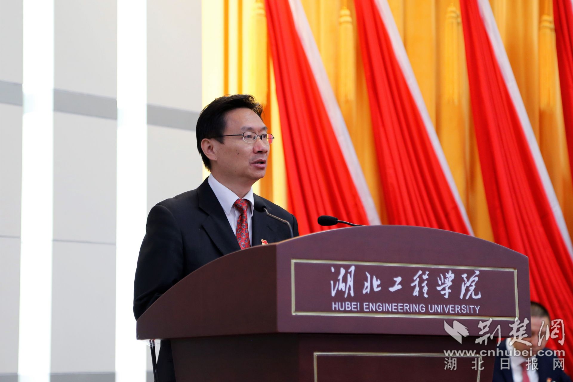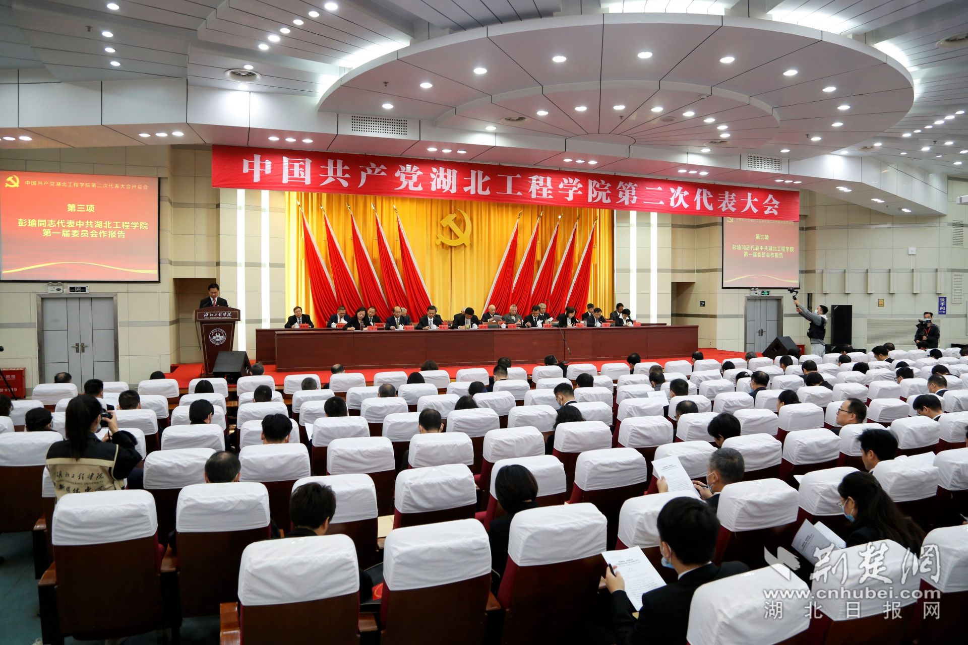 湖北工程學(xué)院黨委書記彭瑜作工作報告。記者魯偉龍 攝