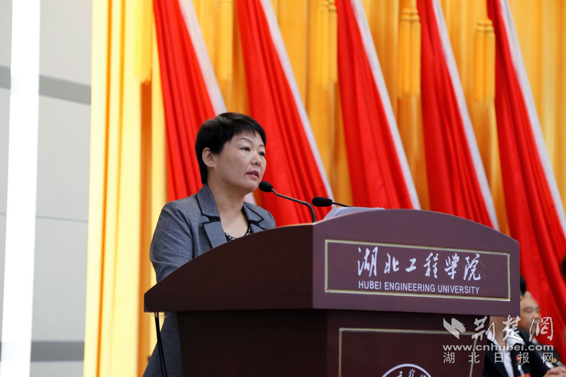 中共孝感市委常委、組織部長杭鶯代表孝感市委市政府向大會致辭。記者魯偉龍 攝