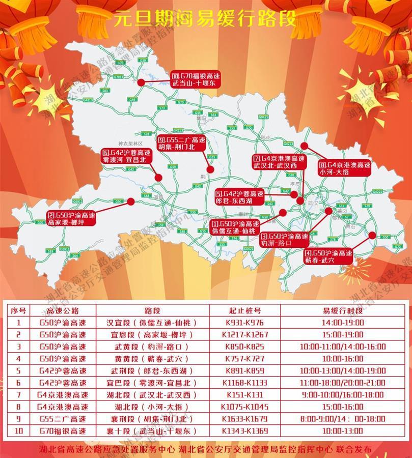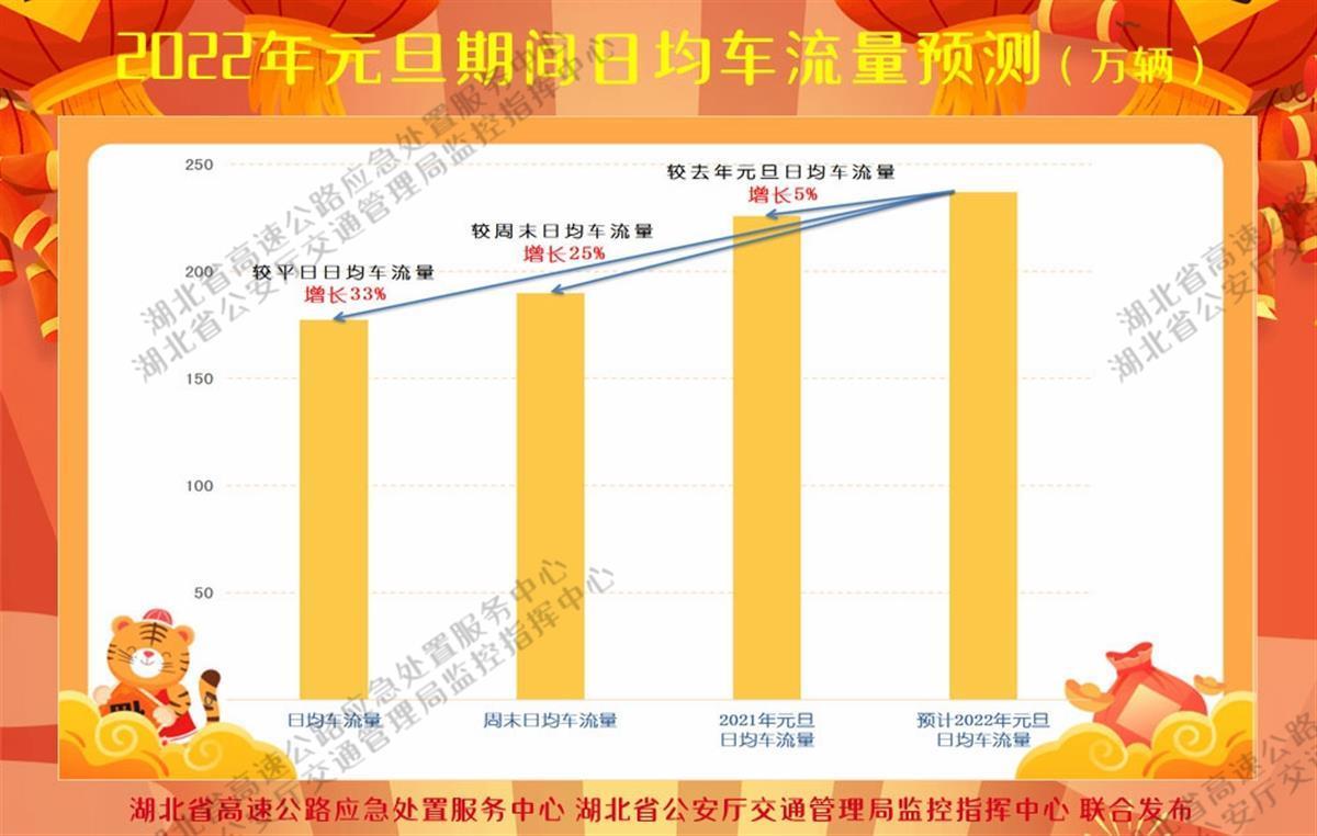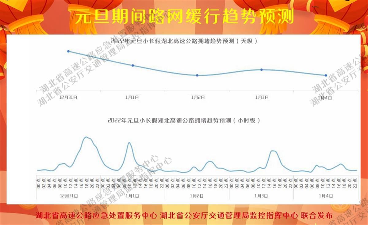 根據(jù)湖北省交通運(yùn)輸廳高速公路管理局對歷年來高速公路路網(wǎng)運(yùn)行動(dòng)態(tài)分析,“元旦”期間路網(wǎng)流量主要以短途出行為主,屆時(shí)社會(huì)公眾走親訪友、旅游度假等出行需求相對集中,全省高速公路車流量較日常將有明顯增長,部分路段及站口出行壓力將有所上升。