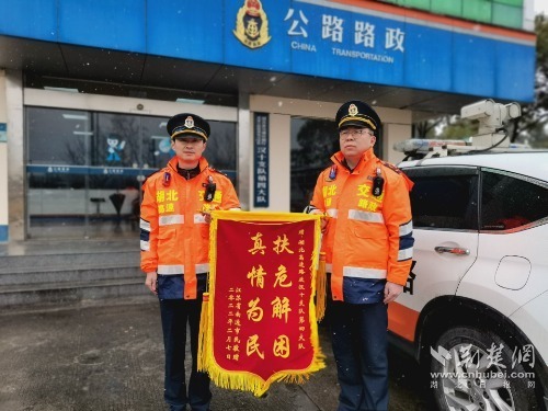 江蘇南通男子送錦旗點(diǎn)贊湖北高速路政暖心解圍 通訊員 供圖
