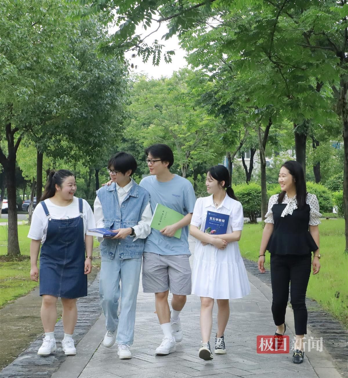 謝旻君(右)和學(xué)生們在一起