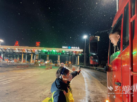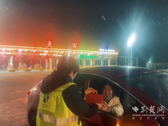 荊楚網(wǎng)(湖北日?qǐng)?bào)網(wǎng))訊(記者趙秀琳 通訊員鮮于露華)1月15日,農(nóng)歷臘月二十四,宜昌地區(qū)也迎來(lái)了春運(yùn)后的首輪降雪,歸家的游子馬不停蹄邁著匆忙的腳步,追趕那闔家團(tuán)圓的歡聲笑語(yǔ)。臨近春節(jié),迎著漫天飄飛雪花,宜昌的“南大門”——點(diǎn)軍收費(fèi)站進(jìn)出城區(qū)流量明顯增多。管理所在做好除雪保暢同時(shí),積極開展“雪天送溫暖”志愿服務(wù)活動(dòng),讓司乘感受到“宜路”溫情。