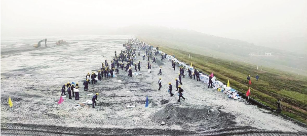 湖北大峪口磷石膏庫舉行綜合演練,現(xiàn)場模擬山體邊坡坍塌處置。