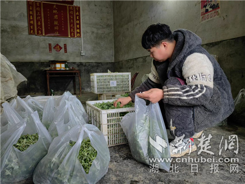 3月14日5點12分,天空仍是一片漆黑,宣恩縣李家河鎮(zhèn)板栗園村卻已經(jīng)是一派繁忙景象。村民打開門前的路燈,忙著將一個個包裹搬到路邊,等待郵車的到來?!俺晒?、成功、成功……”板栗園村四組村民周振元家里,駕駛員鄭明奎正在一邊用藍牙秤稱重,一邊用PDA掃描包裹面單錄入物流信息。包裹里裝的是陽荷、芋頭、黃精、魚腥草、藠頭等新鮮農(nóng)產(chǎn)品,當天中午11點40分左右到達宣恩縣共配中心,趕發(fā)一頻干線郵車,通過郵政大網(wǎng)發(fā)往全國各地。