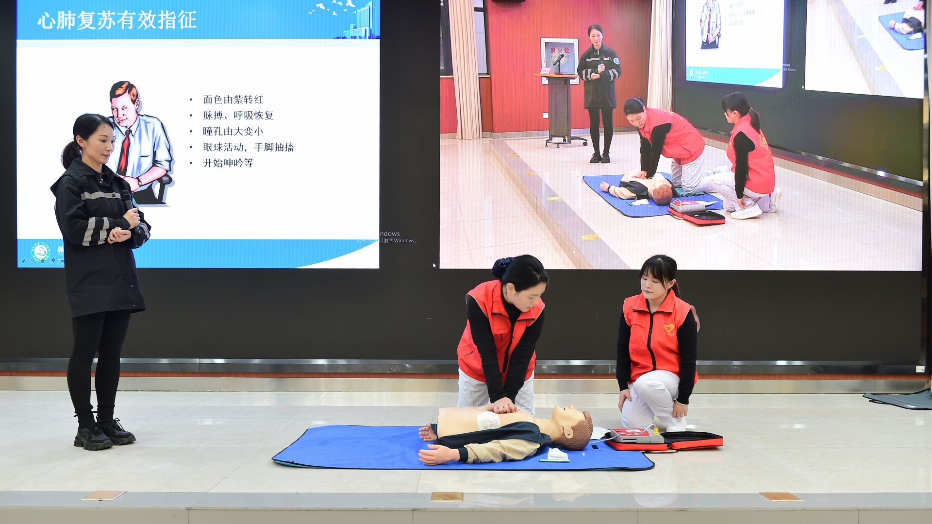 省第三人民醫(yī)院肖芳應急救護志愿服務隊為大家講授心肺復蘇等急救知識,現場演示了自動體外除顫器(AED)和心臟按壓、開放氣道、人工呼吸等急救技能的操作流程以及注意事項。