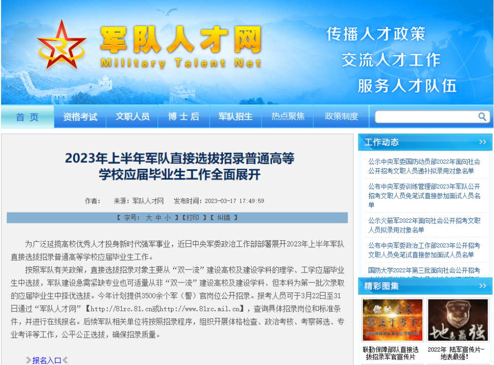 2023年上半年直招軍官今天(3月22日)開始報(bào)名,