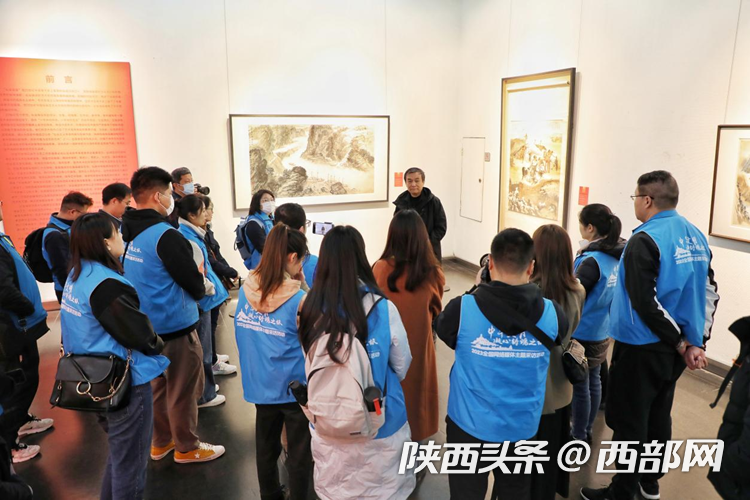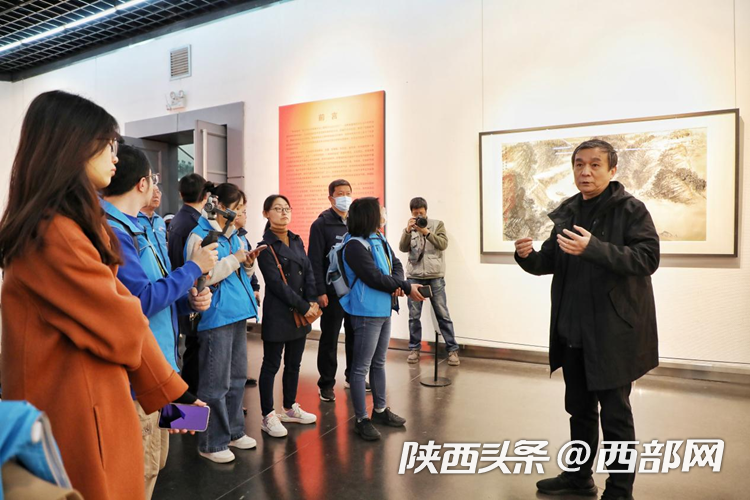 來自全國各地的媒體團(tuán)記者跟隨西安美術(shù)學(xué)院教授、博導(dǎo)、美術(shù)評論家程征的講解,詳細(xì)了解這個扎根西北的藝術(shù)畫派傳承與發(fā)展的歷史脈絡(luò)。