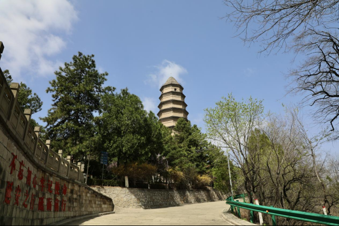 寶塔山古時(shí)候稱豐林山,北宋時(shí)改名為嘉陵山,又因山上有寶塔一座,所以被習(xí)慣性地稱為寶塔山。寶塔山海拔1135.5米,為周圍的群山之冠,是革命圣地延安的標(biāo)志和象征,寶塔山融歷史文物和革命遺址為一脈,集人文景觀和自然景觀為一體,是全國(guó)愛國(guó)主義、革命傳統(tǒng)和延安精神三大教育基地之一。