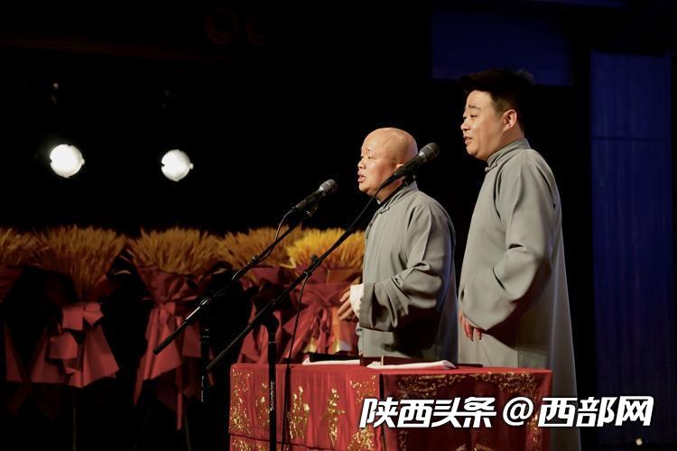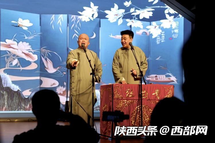 “我們長安的口音,四個字——生冷蹭倔?!薄罢O,你說得沒錯?!币粡堊雷?,兩架話筒,在西安青曲社的相聲舞臺上,兩個穿著長袍馬褂的相聲演員把包袱甩得叮當(dāng)響。在兩人配合默契的捧逗之間,現(xiàn)場歡樂的氛圍被推向了最高潮。整場演出高潮迭起、精彩紛呈,博得了臺下媒體團記者的陣陣掌聲與喝彩聲。
