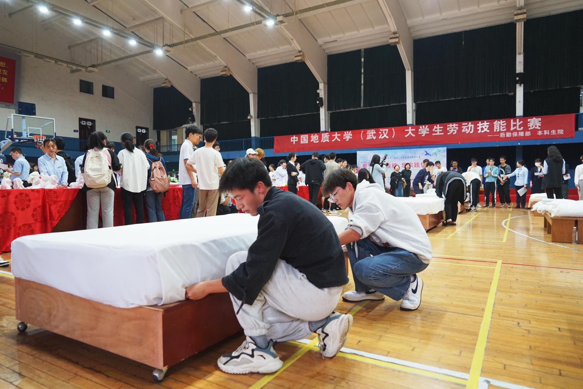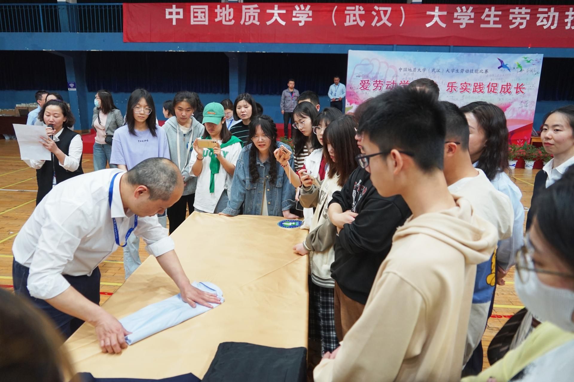 荊楚網(wǎng)(湖北日報(bào)網(wǎng))訊(通訊員 吳華玉 李冬東 圖片 趙婧萱、任潔 視頻 王菁)為全面貫徹黨的教育方針,落實(shí)教育部《大中小學(xué)勞動教育指導(dǎo)綱要(試行)》和?!度婕訌?qiáng)新時代勞動教育實(shí)施方案》等文件精神,教育引導(dǎo)學(xué)生樹立自我管理、自我服務(wù)意識,強(qiáng)化學(xué)生生活能力培養(yǎng),4月13日下午,中國地質(zhì)大學(xué)(武漢)在西區(qū)體育館舉行以“愛勞動學(xué)技能 樂實(shí)踐促成長”為主題的大學(xué)生勞動技能比賽。比賽由校后勤保障部和本科生院共同組織,24支隊(duì)伍兩百余名大學(xué)生報(bào)名參加。