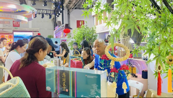 恩施市以此次博覽會為契機,結合恩施展館的搭建特色,圍繞“好吃的、好看的、好玩的”等眾多要素組織市域內(nèi)旅游景區(qū)、旅游社、星級飯店、涉硒企業(yè)、茶企、旅游商品、文創(chuàng)產(chǎn)品、非遺項目、土特產(chǎn)等近20家企業(yè),60余種商品、70余人組團與境內(nèi)外2000余家展商共襄盛會。
