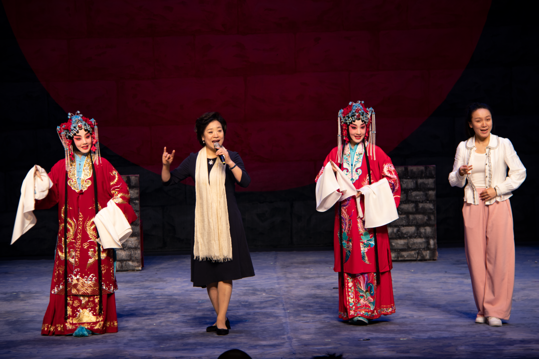 返場李院長攜三位學生演唱程派《穆桂英再掛帥》片段(左一為李若溪、右二為浦樹、右一為王致賢)