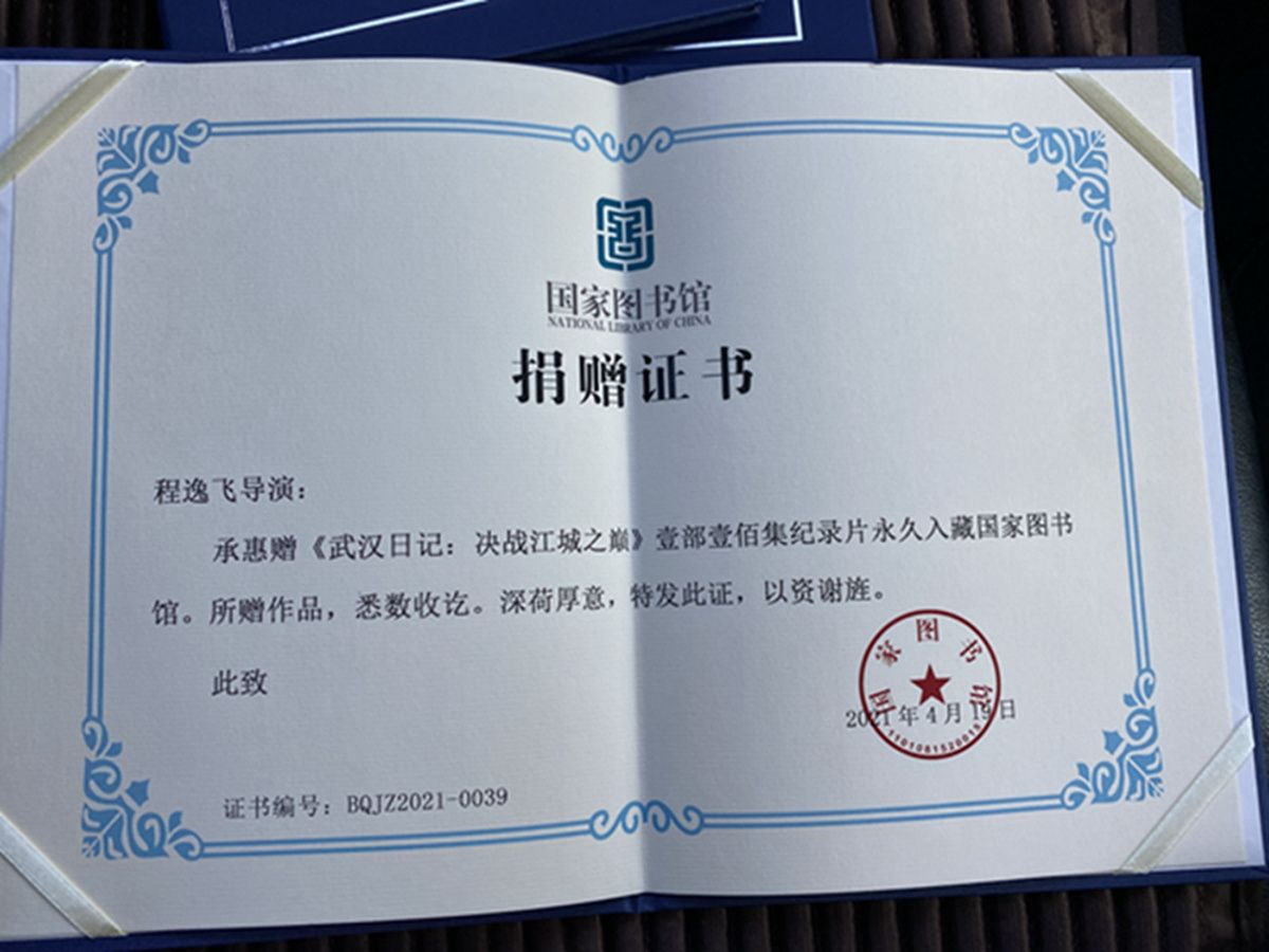 518是國際博物館日,程逸飛導(dǎo)演前往國家圖書館,領(lǐng)取收藏證書。他說,作為影視人,能夠深入一線拍攝武漢疫情,是一種責(zé)任使命,能夠用鏡頭見證記錄英雄的武漢人民,也是他一生的榮幸,希望這些紀(jì)錄片作品,能夠影響當(dāng)下的人,發(fā)揮其文獻(xiàn)價值和史料價值,激勵廣大人民,不忘初心,牢記使命,為新時代美好生活而加油奮斗。