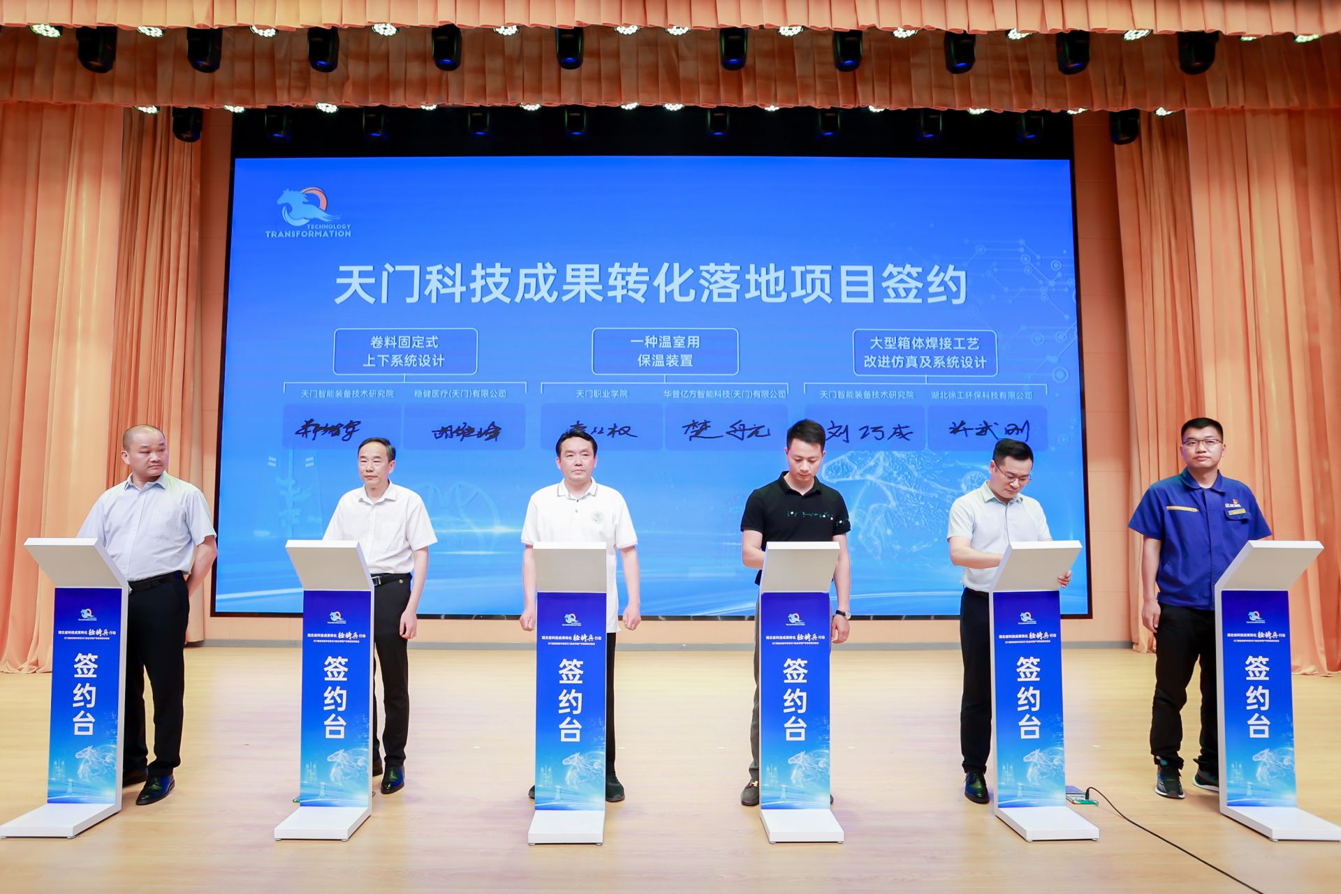 活動(dòng)現(xiàn)場(chǎng),天門智能裝備技術(shù)研究院、天門職業(yè)學(xué)院與穩(wěn)健醫(yī)療、天瑞電子、華普億方智能等企業(yè)的一批重大項(xiàng)目在現(xiàn)場(chǎng)成功簽約;天門職業(yè)學(xué)院與天門紡織機(jī)械、芯創(chuàng)(天門)電子、科瑞半導(dǎo)體等10家進(jìn)行了企業(yè)“雙掛牌”授牌儀式;來自華中科技大學(xué)、湖北工業(yè)大學(xué)、江漢大學(xué)、湖北科技學(xué)院以及天門智能裝備技術(shù)產(chǎn)業(yè)研究院的一批科研成果在現(xiàn)場(chǎng)進(jìn)行了推介路演。