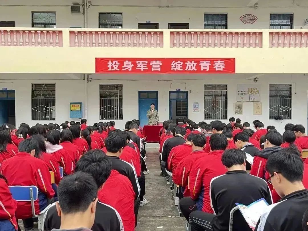人武部何寶平政委結(jié)合自身從軍三十年的體會,暢談兵之初經(jīng)歷,鼓勵大家踴躍報名參軍、報考軍校,同學們聽得非常專注。6月下旬填報高考志愿期間,人武部將再次來學校進行宣傳。