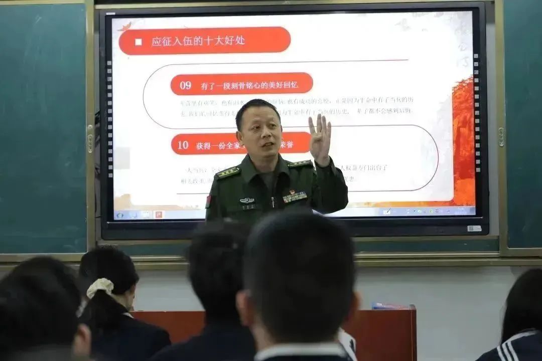 在荊門外語學校、湖北信息工程學校,征兵宣講員走進各畢業(yè)班,結(jié)合課件、征兵宣傳手冊,向15個班級學生講解了報名參軍的十大好處。