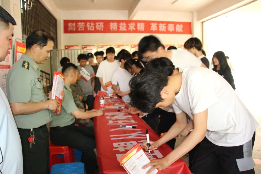 同學們紛紛在“理想從入伍揚帆 人生在部隊閃光”的條幅前駐足并簽下自己的名字。