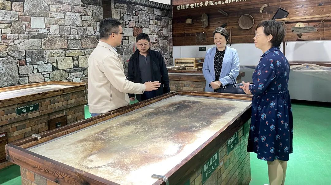 期間,評估小組一行赴恩施職業(yè)技術(shù)學(xué)院-恩施玉露制作技藝傳承培訓(xùn)基地現(xiàn)場調(diào)研。隨后,在恩施市非遺中心與恩施市國家級、省級非遺代表性傳承人召開座談會,對恩施市非遺代表性傳承人及傳承基地開展傳承培訓(xùn)和宣傳推廣工作給予肯定,評估小組一行鼓勵代表性傳承人進(jìn)一步開展宣傳展示活動,并為寶貴的非物質(zhì)文化遺產(chǎn)項目多培養(yǎng)后繼人才。