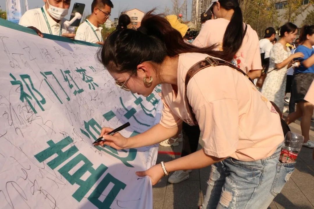 沿線(xiàn)群眾踴躍在萬(wàn)里茶道申遺橫幅上簽名