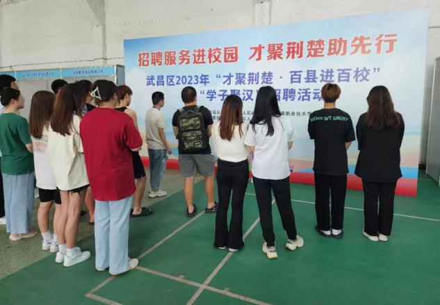 為響應省人社廳2023年高校畢業(yè)生等青年就業(yè)創(chuàng)業(yè)十項行動,全力支持高校畢業(yè)生留鄂來鄂就業(yè)的號召,“才聚荊楚·百縣進百?!痹谖洳齾^(qū)相關職能部門的推進下有序進行。武昌作為高校畢業(yè)生就業(yè)意愿較高的地區(qū),一直受到學子的關注。本次招聘活動吸引了眾多求職學子前來參加。