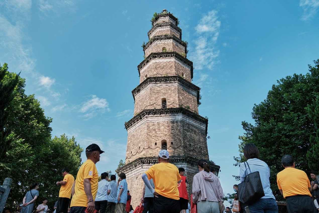 活動期間,來自全國各地的參賽選手跟隨著講解員,一路參觀了天然塔、猇亭古碼頭等地,并在“感知歷史 會游中國”的打卡點下紛紛合影留念。