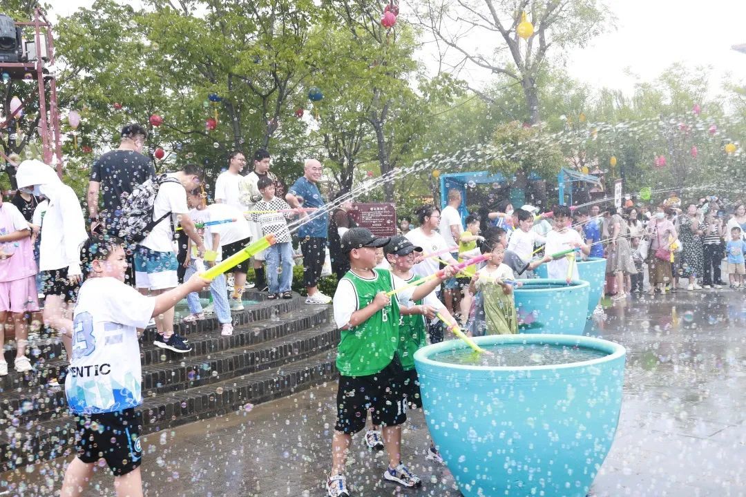 在炎熱的夏季,清明上河園還提供了多個親水設(shè)施,讓游客們可以清涼一夏。大宋游藝場和傀儡文化廣場兩個水上樂園提供了室外水上娛樂設(shè)施,而喊泉和伴隨著呼喊聲而起的水柱更是為游客們帶來清涼的感覺。