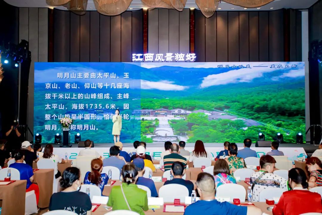 推介會(huì)現(xiàn)場(chǎng),明月山旅游推介官向現(xiàn)場(chǎng)嘉賓們熱情地介紹了江西深厚的月亮文化和“春賞花品茶、夏露營(yíng)避暑、秋賞月參禪、冬滑雪泡泉”特色文旅產(chǎn)品?;顒?dòng)現(xiàn)場(chǎng)還搭建了產(chǎn)品展區(qū),展出了明月金片、明月山剪紙等江西非遺民俗文化產(chǎn)品,為武漢當(dāng)?shù)厥忻駧ケ姸嗑皡^(qū)門票/套票、江西特產(chǎn)及文創(chuàng)禮品,現(xiàn)場(chǎng)氛圍濃郁。