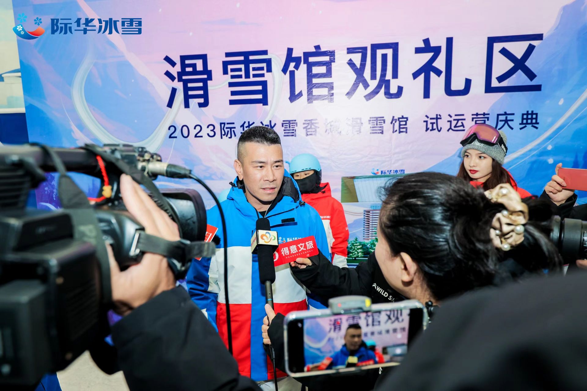 活動(dòng)現(xiàn)場(chǎng),政府領(lǐng)導(dǎo)、新興際華集團(tuán)領(lǐng)導(dǎo)相繼發(fā)表了重要講話,同時(shí)現(xiàn)場(chǎng)還邀請(qǐng)了自由式滑雪奧運(yùn)冠軍韓曉鵬先生親臨助力冰雪運(yùn)動(dòng),并登臺(tái)為冰雪運(yùn)動(dòng)發(fā)表相關(guān)講話。隨后,新興際華集團(tuán)領(lǐng)導(dǎo)與政府相關(guān)領(lǐng)導(dǎo)一同為際華冰雪·香城滑雪館試運(yùn)營(yíng)慶典啟幕,邀請(qǐng)現(xiàn)場(chǎng)嘉賓一同見證炎炎夏日中“北國(guó)風(fēng)光”,將整個(gè)活動(dòng)推向了高潮。