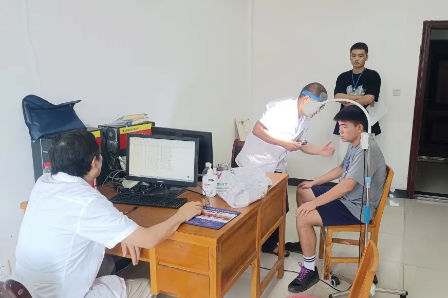 體檢現(xiàn)場,在征兵工作人員的引導下,應征青年們整齊列隊,有序進行五官、內(nèi)外科、彩超、心理測試等項目檢查,醫(yī)務人員各司其職,嚴格按照體檢標準要求并做好登記。