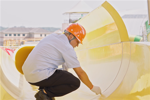 高溫炎炎,水上樂園室外溫度達到38度,檢驗員不畏酷暑,戴上安全帽,穿上手套,手持儀器設(shè)備,檢查各項關(guān)鍵環(huán)節(jié),全面評估設(shè)備的安全。在檢驗過程中,檢驗員上至水滑道頂端,下至地下水泵機房,嚴格按照相關(guān)法規(guī)與標準,對結(jié)構(gòu)件、安全防護裝置、浮動裝置等進行測試,確保設(shè)施安全性和穩(wěn)定性達到標準要求。檢驗員還對滑梯連接處是否平滑、操作流程是否規(guī)范進行了檢查;在電氣方面測量了設(shè)備接地、絕緣電阻是否符合要求;最后還進行了試滑試驗,將靜態(tài)檢驗和動態(tài)檢驗相結(jié)合,排查設(shè)備潛在的安全隱患。