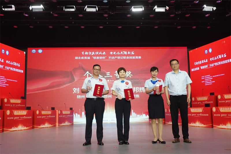 本次競(jìng)賽是全國(guó)首屆不動(dòng)產(chǎn)登記職業(yè)技能競(jìng)賽的湖北省選拔賽,也是全面實(shí)施不動(dòng)產(chǎn)統(tǒng)一登記制度以來(lái),我省首次舉辦不動(dòng)產(chǎn)登記職業(yè)技能競(jìng)賽,在全省自然資源系統(tǒng)引起了較大反響。此次競(jìng)賽內(nèi)容、考試大綱及競(jìng)賽規(guī)則均按照全國(guó)不動(dòng)產(chǎn)登記職業(yè)技能競(jìng)賽的相關(guān)規(guī)定執(zhí)行,涵蓋黨建黨史知識(shí)、黨的二十大精神,不動(dòng)產(chǎn)登記相關(guān)法律、法規(guī)、規(guī)范性文件,不動(dòng)產(chǎn)登記操作實(shí)務(wù),窗口服務(wù)規(guī)范等內(nèi)容,優(yōu)勝選手將代表我省與全國(guó)各省選拔的優(yōu)秀選手進(jìn)行交流學(xué)習(xí)、切磋技藝。全省17支隊(duì)伍,68名參賽選手,通過(guò)層層選拔,代表全省4000余名不動(dòng)產(chǎn)登記工作人員參加此次競(jìng)賽。經(jīng)過(guò)筆試、現(xiàn)場(chǎng)競(jìng)答、代表展示等環(huán)節(jié)的激烈角逐,武漢市代表隊(duì)榮獲團(tuán)體一等獎(jiǎng),咸寧市代表隊(duì)、孝感市代表隊(duì)榮獲團(tuán)體二等獎(jiǎng),仙桃市代表隊(duì)、襄陽(yáng)市代表隊(duì)、黃岡市代表隊(duì)榮獲團(tuán)體三等獎(jiǎng);來(lái)自武漢市代表隊(duì)杜殿虎獲個(gè)人一等獎(jiǎng),來(lái)自黃岡市代表隊(duì)鄭鵬、荊門(mén)市代表隊(duì)侯雪婷獲個(gè)人二等獎(jiǎng),來(lái)自隨州市代表隊(duì)劉萌、鄂州市代表隊(duì)李芳、恩施州代表隊(duì)張邦輝獲個(gè)人三等獎(jiǎng)。