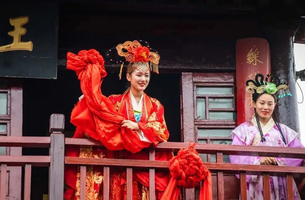景區(qū)免費(fèi)為“準(zhǔn)新人”提供精美華麗的婚禮鳳冠霞帔一套;
