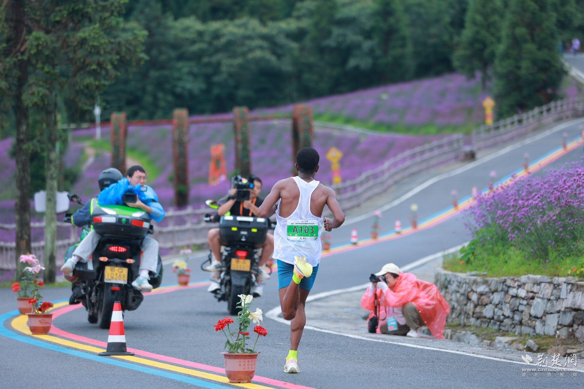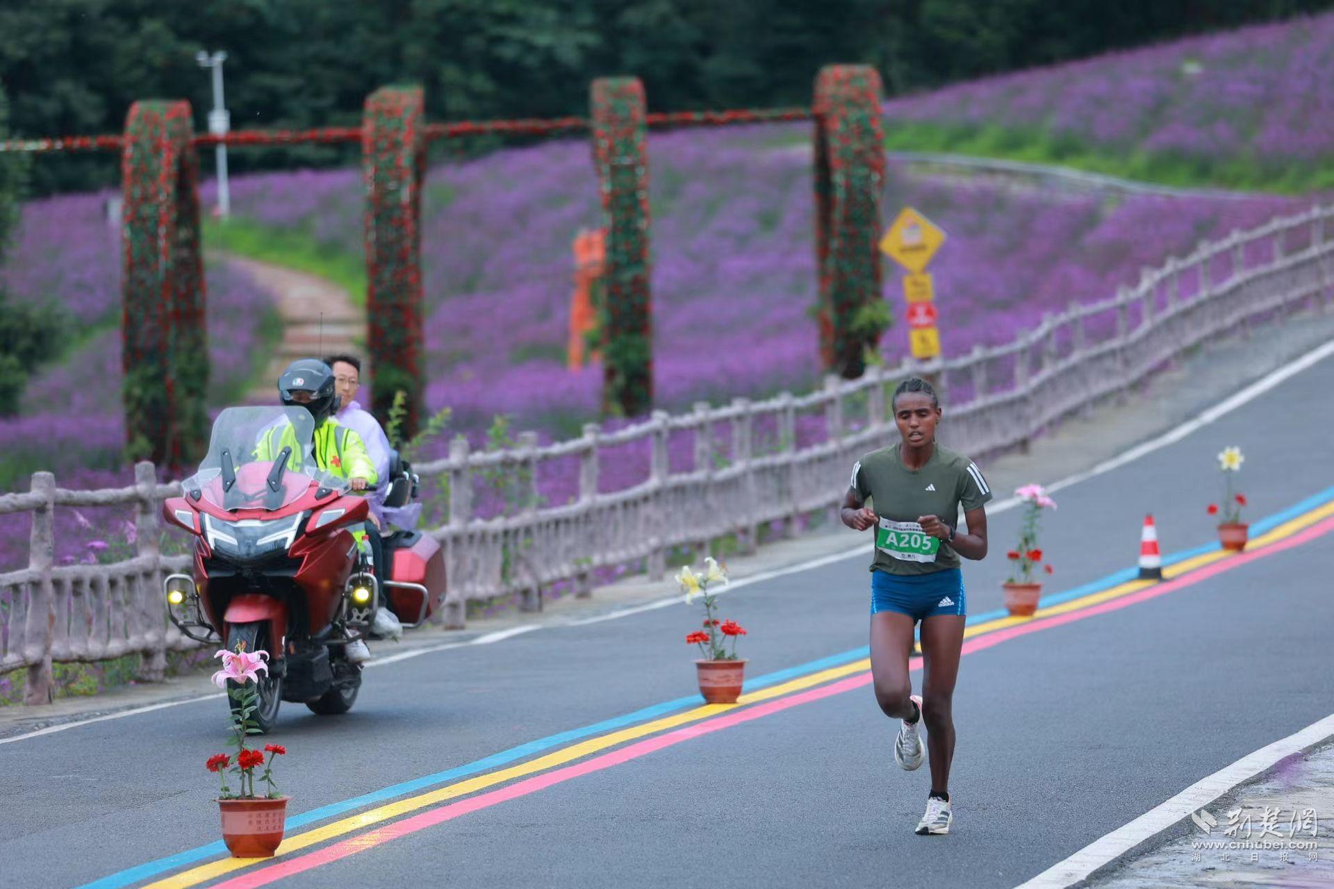 賽事起點(diǎn)位于海拔1100米的野三關(guān)鎮(zhèn)政府,終點(diǎn)位于美麗的野三關(guān)森林花海,海拔1700米,起終點(diǎn)落差600米。一路上,綠樹成蔭,鮮花為伴,吸引了來自埃塞俄比亞、肯尼亞、巴基斯坦等國家的12名國際友人和來自全國各地的參賽選手。他們歡樂地穿梭在林海與花海中,沖刺在全程爬坡的“最虐”賽道上。