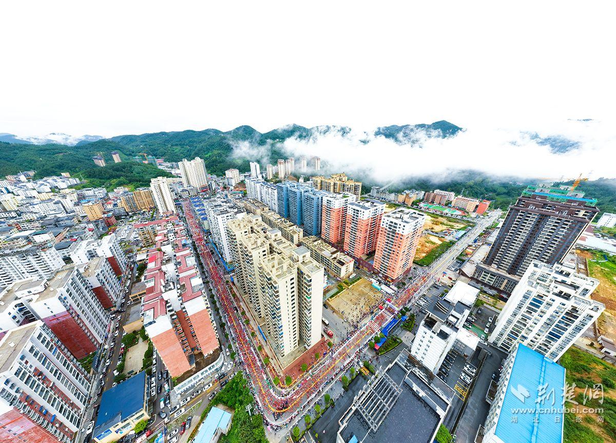 隨著節(jié)奏激昂的音樂響徹全場(chǎng),5000名參賽選手在專業(yè)教練的帶領(lǐng)下開始熱身,火熱動(dòng)感的音樂、整齊劃一的動(dòng)作喚醒了這座城,越來越多的群眾匯聚到賽道兩旁,共同期待這場(chǎng)巴東文化旅游的盛會(huì)。