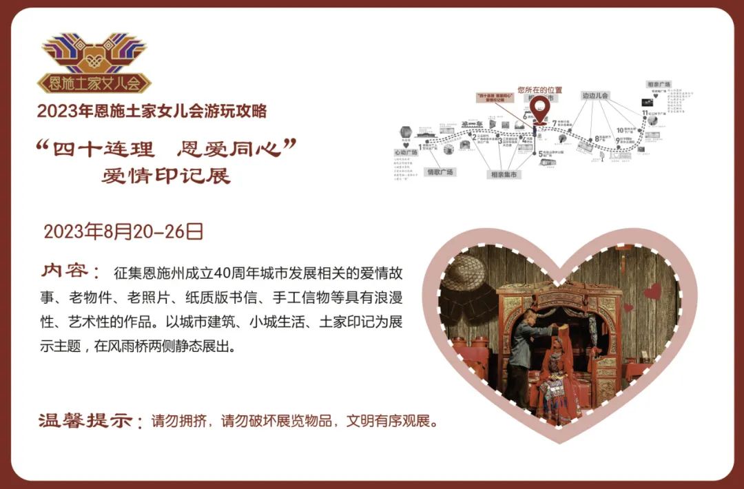 活動內容:恩施40年城市發(fā)展相關的愛情故事、老物件、老照片、紙質版書信、手工信物等具有浪漫性、藝術性的作品。以城市建筑、小城生活、土家印記為展覽主題,在風雨橋兩側靜態(tài)展出。