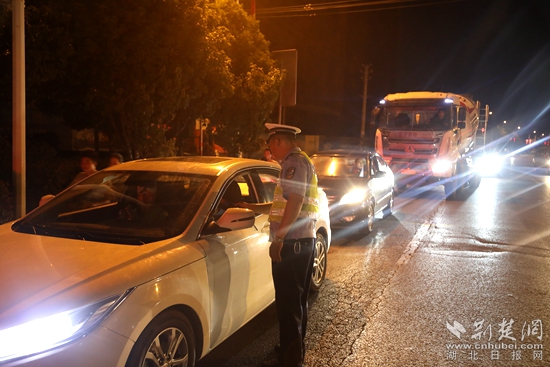 崇陽交警在重點(diǎn)路段嚴(yán)查酒駕醉駕。通訊員 供圖