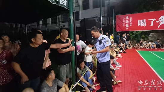 “當(dāng)今社會(huì),電信網(wǎng)絡(luò)詐騙‘花樣百出’,騙術(shù)層出不窮,不明鏈接千萬別點(diǎn)開,小利誘惑一定要警惕……”8月13日晚,在銅鐘鄉(xiāng)“村BA”籃球賽現(xiàn)場,銅鐘派出所民輔警利用中場休息時(shí)間耐心地給現(xiàn)場觀賽群眾講解防詐騙知識。
