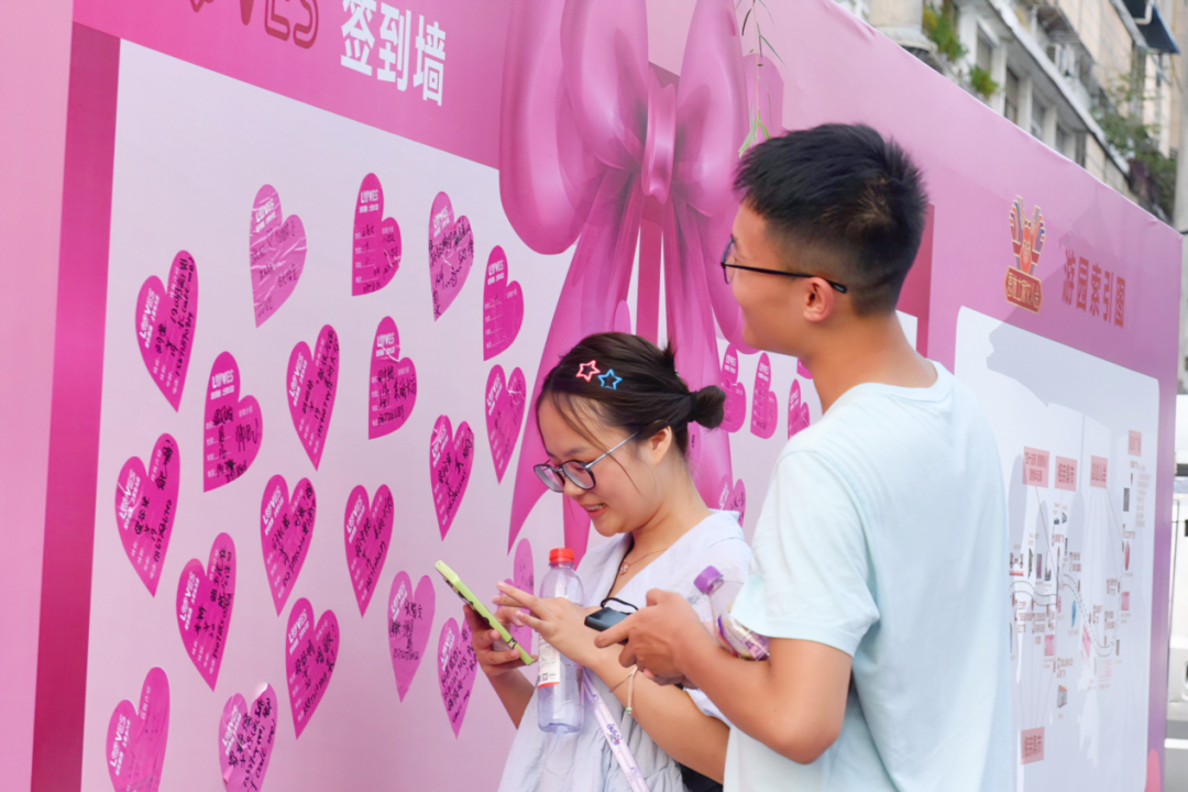 本屆游園會(huì)活動(dòng)在設(shè)計(jì)之初就征集了時(shí)下最受年輕人歡迎的互動(dòng)游戲,推出的系列互動(dòng)活動(dòng)也深諳年輕人喜好,深得年輕人好評(píng)。“今年的女兒會(huì)與以往相比,我們有更強(qiáng)烈的歸屬感,這是屬于我們年輕人的活動(dòng)?!边@是游客主動(dòng)向工作人員說(shuō)出的心里話。事實(shí)上,因參與游園會(huì)活動(dòng),或留下相親信息、或傳遞聲音情書(shū)、或參與愛(ài)情大冒險(xiǎn),他們結(jié)識(shí)到了心動(dòng)的另一半。