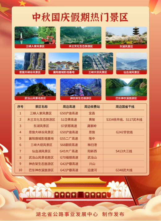 荊楚網(wǎng)(湖北日報網(wǎng))訊(記者趙秀琳 通訊員何林燕)9月26日,湖北省公路事業(yè)發(fā)展中心發(fā)布《2023年中秋國慶假期湖北省干線公路出行指南》。通過對歷年來公路網(wǎng)運行態(tài)勢分析,預(yù)計今年中秋國慶期間公眾返鄉(xiāng)探親、自駕出游等出行需求將會集中釋放,省內(nèi)各地市州重點路段和通往省內(nèi)知名景區(qū)公路的交通流量將出現(xiàn)明顯增幅,省內(nèi)國高網(wǎng)、國省干線、武漢市周邊路段易出現(xiàn)不同程度的擁堵緩行。提醒公眾合理規(guī)劃出行路線,錯時錯峰出行。