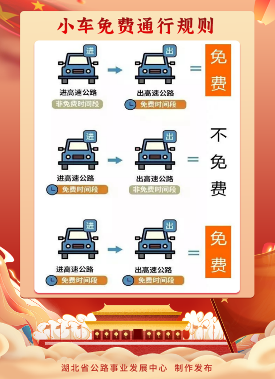 免費時間:9月29日0時起至10月6日24時結(jié)束,高速公路以車輛駛離出口收費車道的時間為準,普通公路以車輛通過收費站收費車道的時間為準。